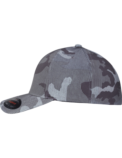 Maskáčová potlač plus nenápadný pruhovaný dizajn | Mierne predohnutý šilt | Patentovaná technológia Flexfit, 6-panel, zosilnené čelo. 92% Polyester / 8% Elastan.