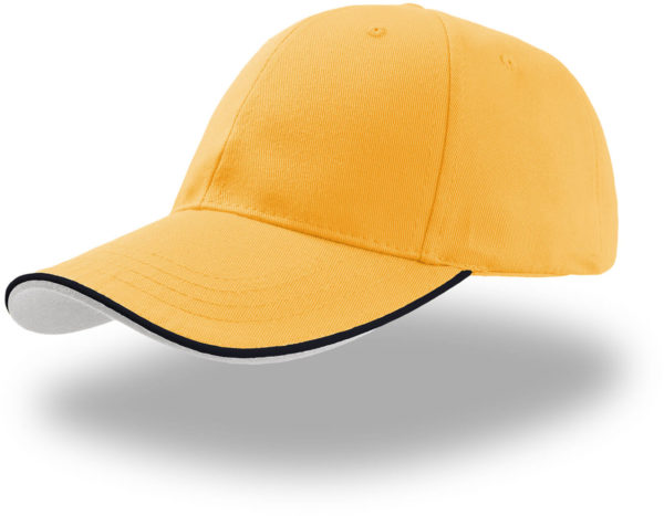 65% polyester, 35% bavlna spevnená predná časť, kontrastné linka na šilte a zapínanie, spodná strana šiltu v kontrastnej farbe, zapínanie na suchý zips